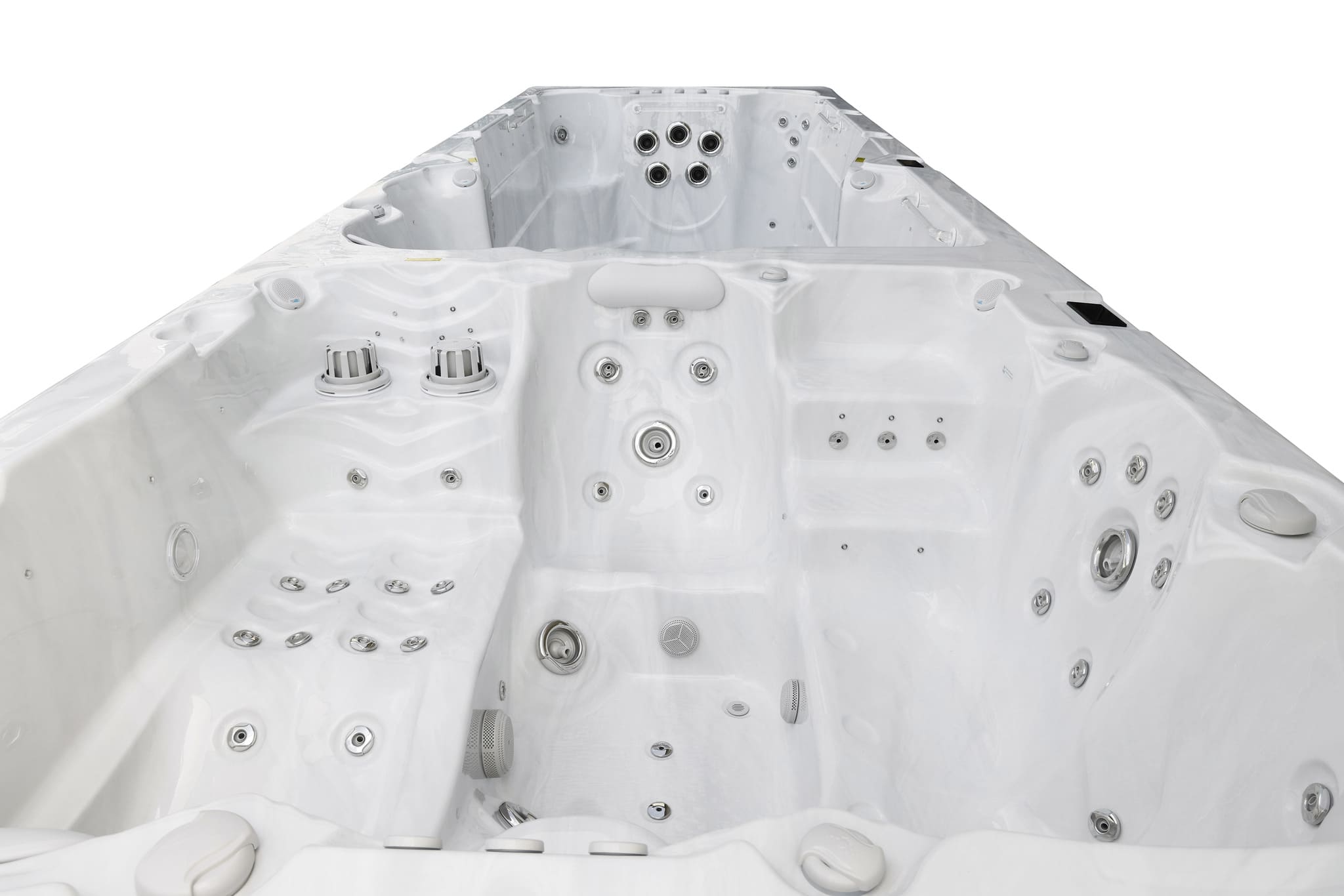 Перед вами комплексное решение для физических упражнений и отдыха. Невероятный комфорт в спа-зоне обеспечивается мощной системой гидромассажа, включающей в себя 101 форсунку. Четыре производительных насоса создают эффективный массаж и интенсивные потоки воды: два насоса мощностью 2,2 кВт для спа-зоны и два мощных насоса (2,2 кВт и 2,9 кВт) для плавательной зоны, позволяющие сформировать идеальный встречный поток для плавания.